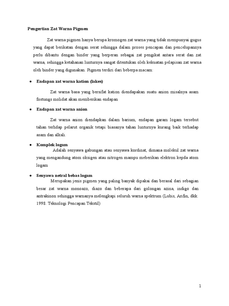 Zat warna adalah senyawa organik berwarna yang digunakan untuk memberi warna pada suatu objek (fessenden & fessenden, 1999). Biasanya makanan atau minuman yang beraroma strawberry misalnya, maka pembuatnya akan memberikan zat warna merah. 26 mar 2011 tinggalkan komentar. Zat warna pigmen merupakan zat warna yang dapat digunakan untuk mencap semua jenis bahan tekstil sifat zat warna ini hanya menempel saja pada permukaan kain dengan pengikat binder. Zat warna untuk bahan tekstil zat warna untuk bahan tekstil dapat dibedakan menjadi 2 yaitu: